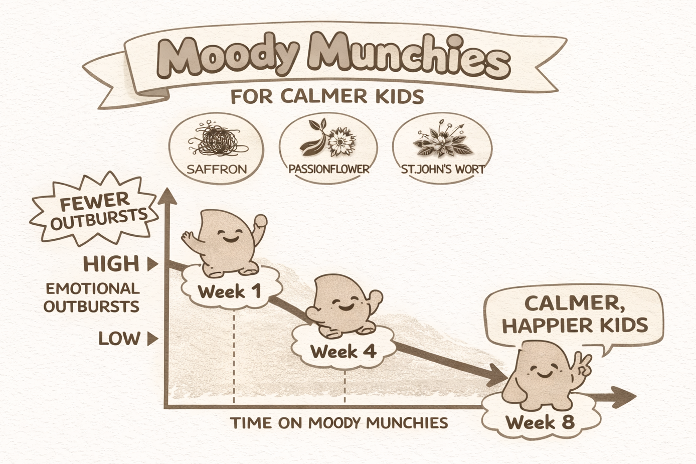 Consistent daily saffron gives their brain the support it needs to smooth out the emotional highs and lows. By week four, most parents notice fewer outbursts and a faster recovery when things go wrong. By week eight, the difference is real: kids who used to unravel over small frustrations are regulating better, bouncing back quicker, and just easier to be around. One gummy a day is all it takes to get there.